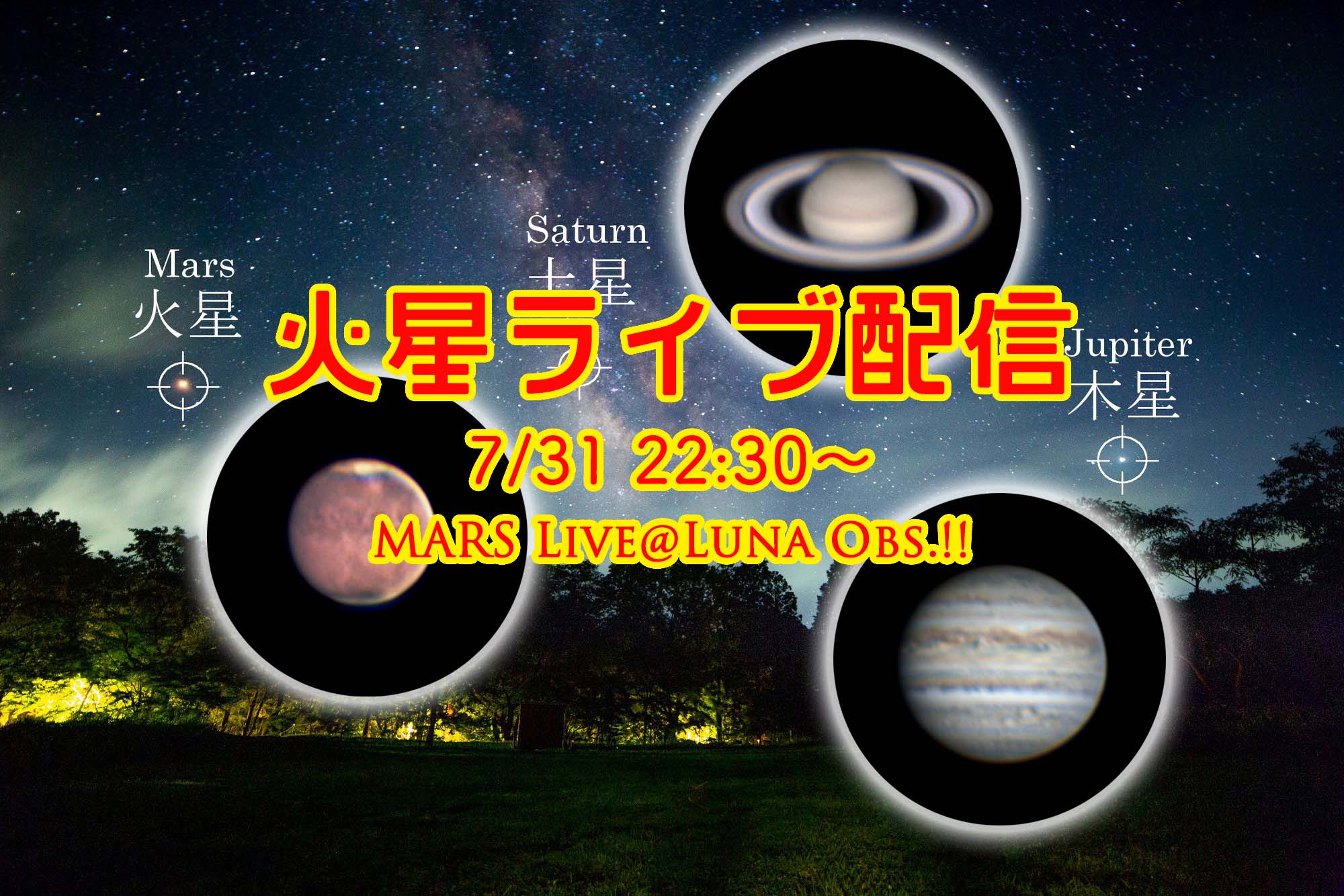 7/31(火) 22:30より、火星Live配信@南阿蘇ルナ天文台スタート!!